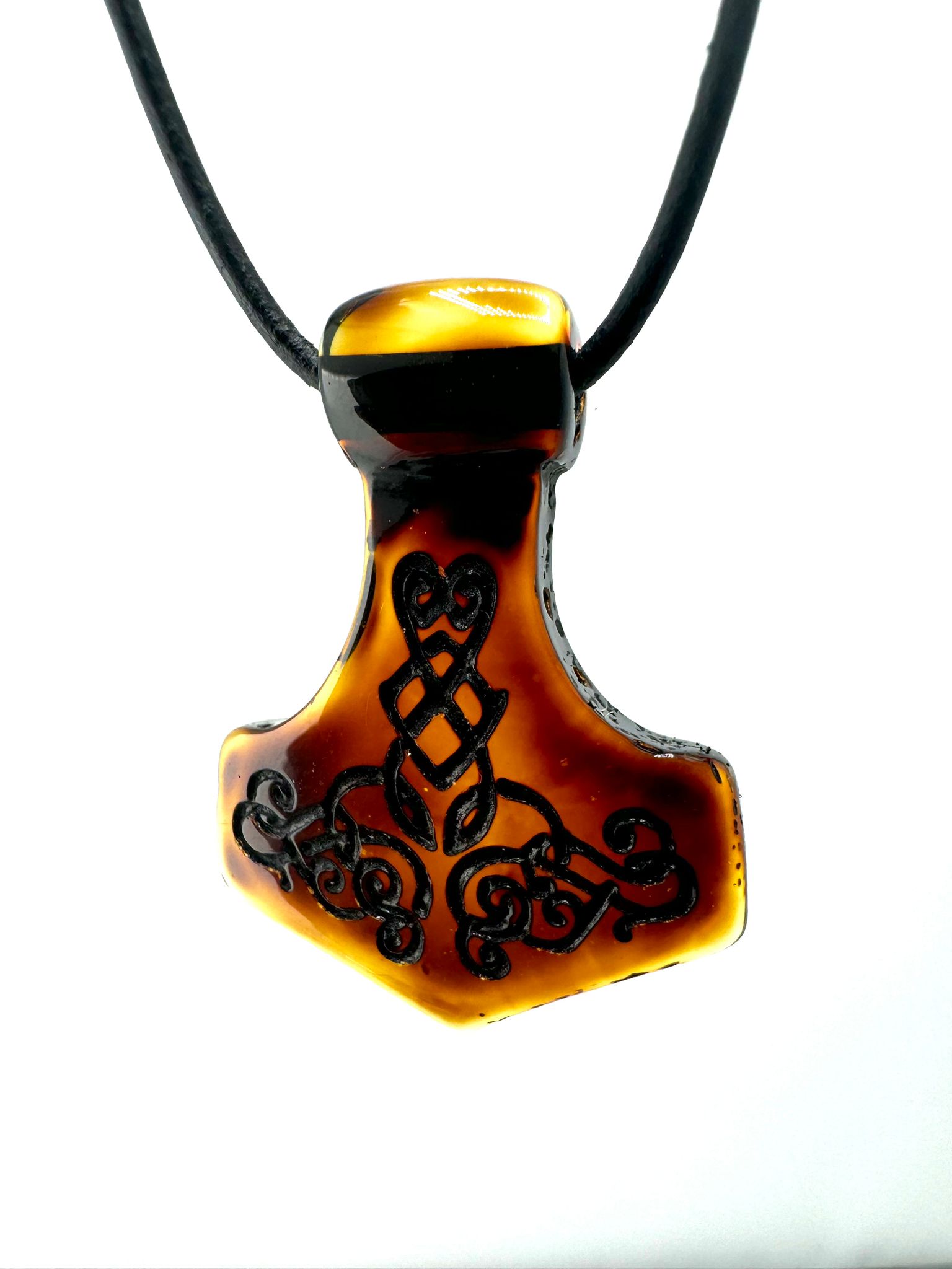 Produktinformationen "Bernstein-Mjönir mit Ornamentik"